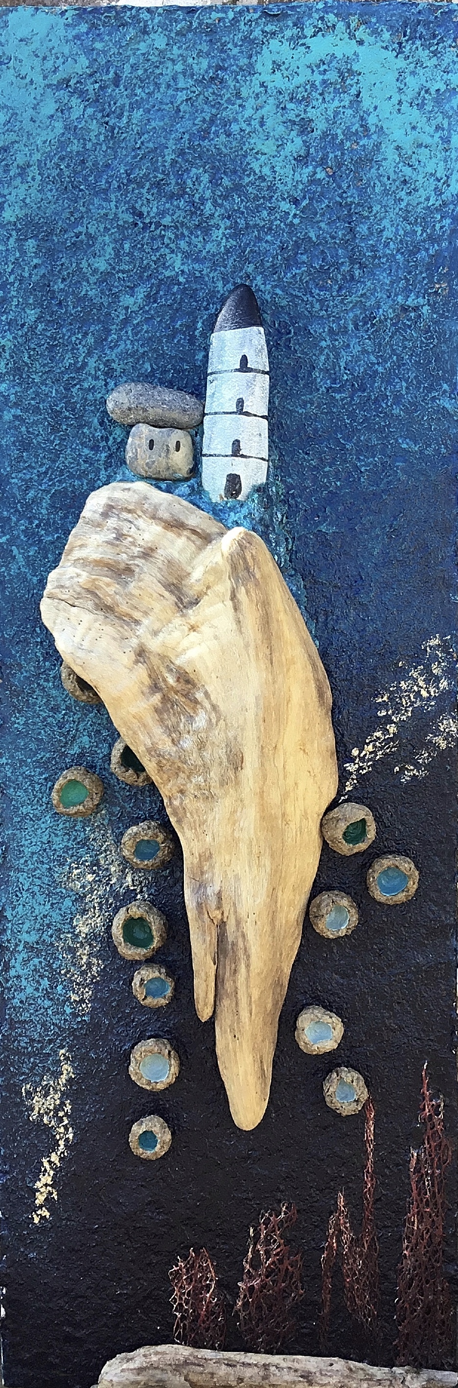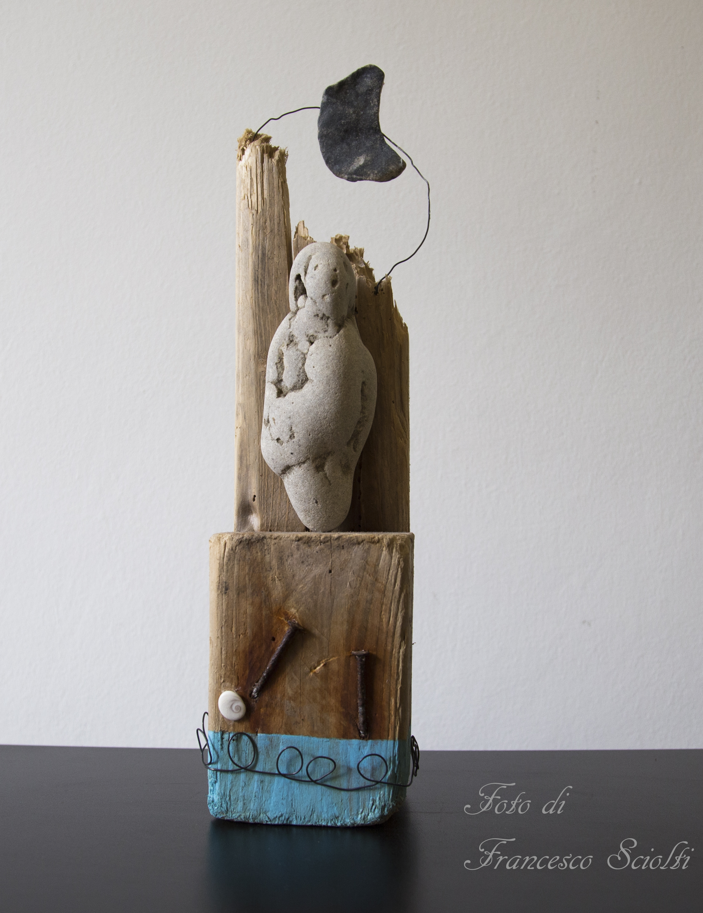 In questa fase la mia arte è nella scelta, lenta e capillare, dei materiali che il mare restituisce, per poi coniugare tra loro forme, dimensioni, spessori, colori, in un personale concetto delle proporzioni e dei significati, all’insegna del recupero e del riuso.