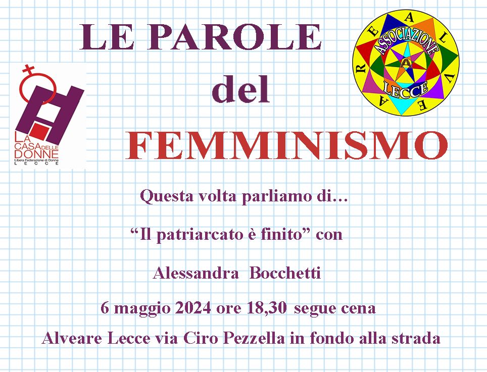 Lunedì 6 maggio ore 18,30 Le Parole del femminismo a cura di Alveare Lecce e Casa delle Donne di Lecce.