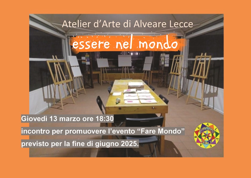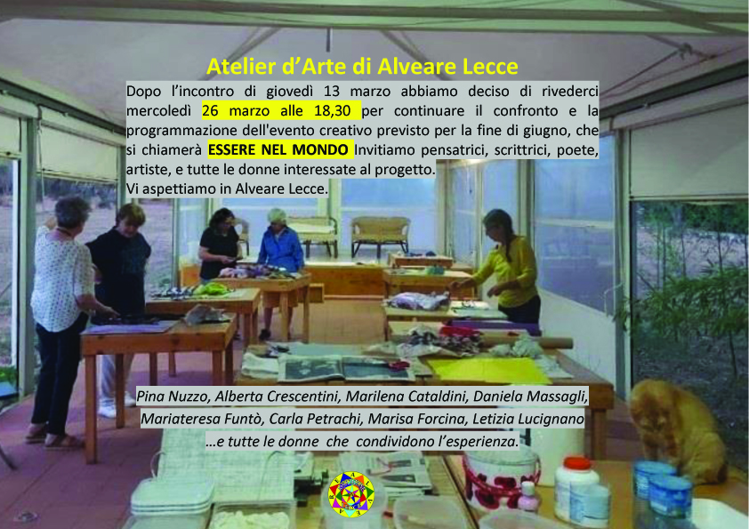 Le donne dell’Atelier d’Arte di Alveare Lecce promuovono per giovedì 13 marzo alle ore 18:30 un incontro aperto a pensatrici, artiste, scrittrici, poete, teso alla realizzazione di un evento intitolato “Essere nel Mondo” la cui data è prevista per la fine di giugno 2025.
